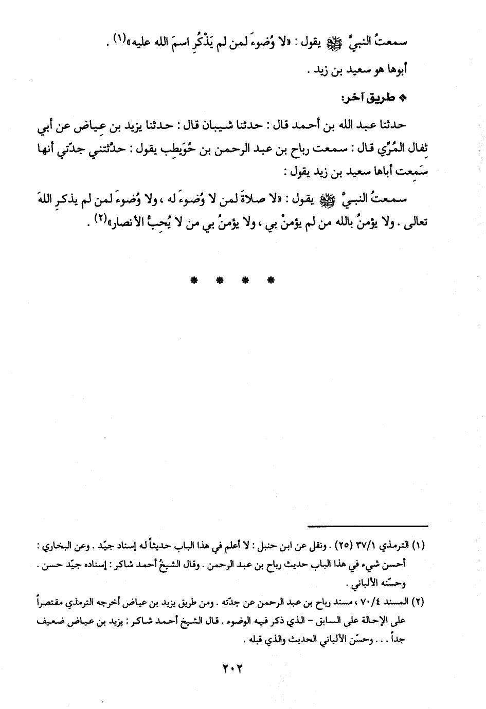 (٢) المسند ٤/ ٧٠، مسند رباح بن عبد الرحمن عن جدّته. ومن طريق يزيد بن عياض أخرجه الترمذي مقتصرًا على الإحالة على السابق - الذي ذكر فيه الوضوء. قال الشيخ أحمد شاكر: يزيد بن عياض ضعيف جدًا. . . وحسّن الألباني الحديث والذي قبله.