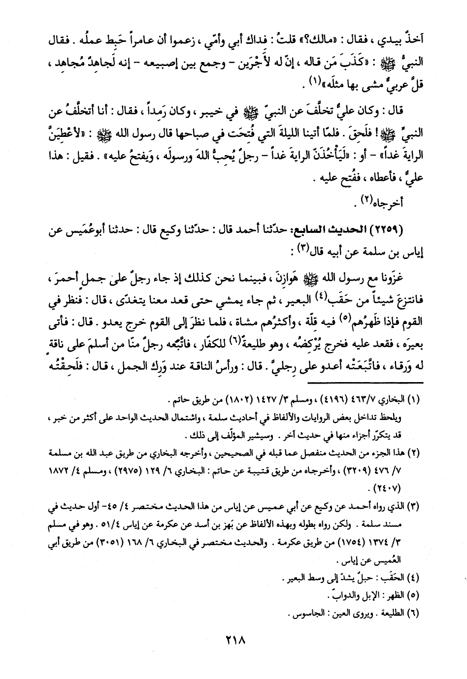 (٣) الذي رواه أحمد عن وكيع عن أبي عميس عن إياس من هذا الحديث مختصر ٤/ ٤٥ - أول حديث في مسند سلمة. ولكن رواه بطوله وبهذه الألفاظ عن بَهز بن أسد عن عكرمة عن إياس ٤/ ٥١. وهو في مسلم ٣/ ١٣٧٤ (١٧٥٤) من طريق عكرمة. والحديث مختصر في البخاري ٦/ ١٦٨ (٣٠٥١) من طريق أبي العُميس عن إياس.