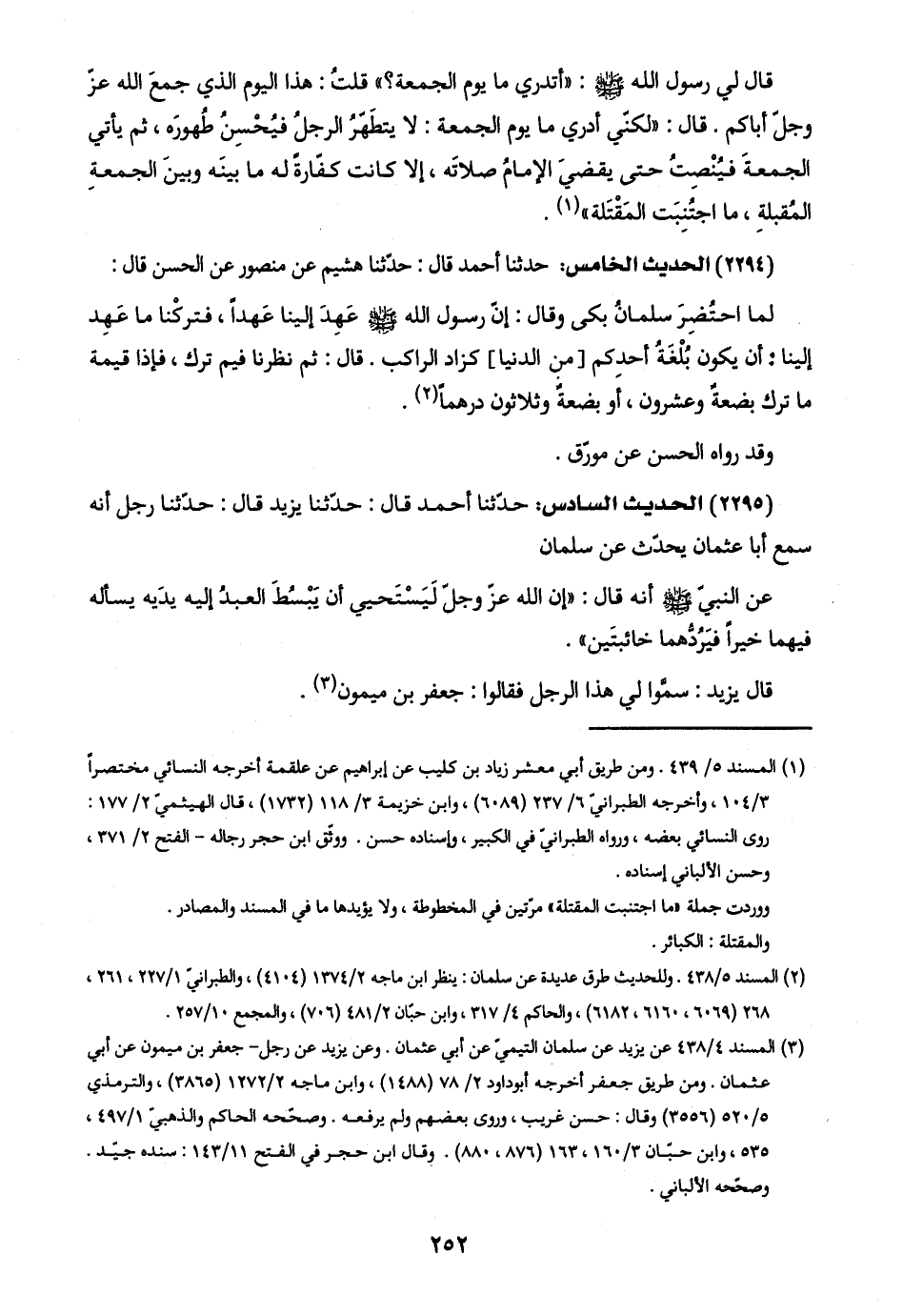 (٢٢٩٥) الحديث السادس: حدّثنا أحمد قال: حدّثنا يزيد قال: حدّثنا رجل أنّه سمع أبا عثمان يحدّث عن سلمان: