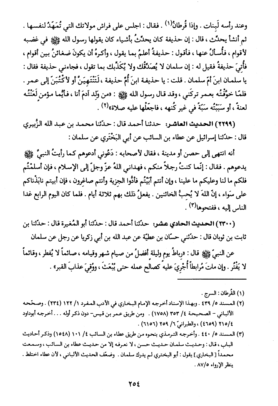 (٢٢٩٩) الحديث العاشر: حدّثنا أحمد قال: حدّثنا محمد بن عبد اللَّه الزُّبيري قال: حدّثنا إسرائيل عن عطاء بن السائب عن أبي البَخْتَري عن سلمان:
