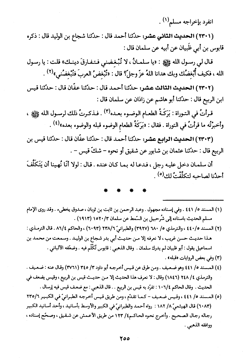 (٢٣٠١) الحديث الثاني عشر: حدّثنا أحمد قال: حدّثنا شجاع بن الوليد قال: ذكره قابوس بن أبي ظَبيان عن أبيه عن سلمان قال: