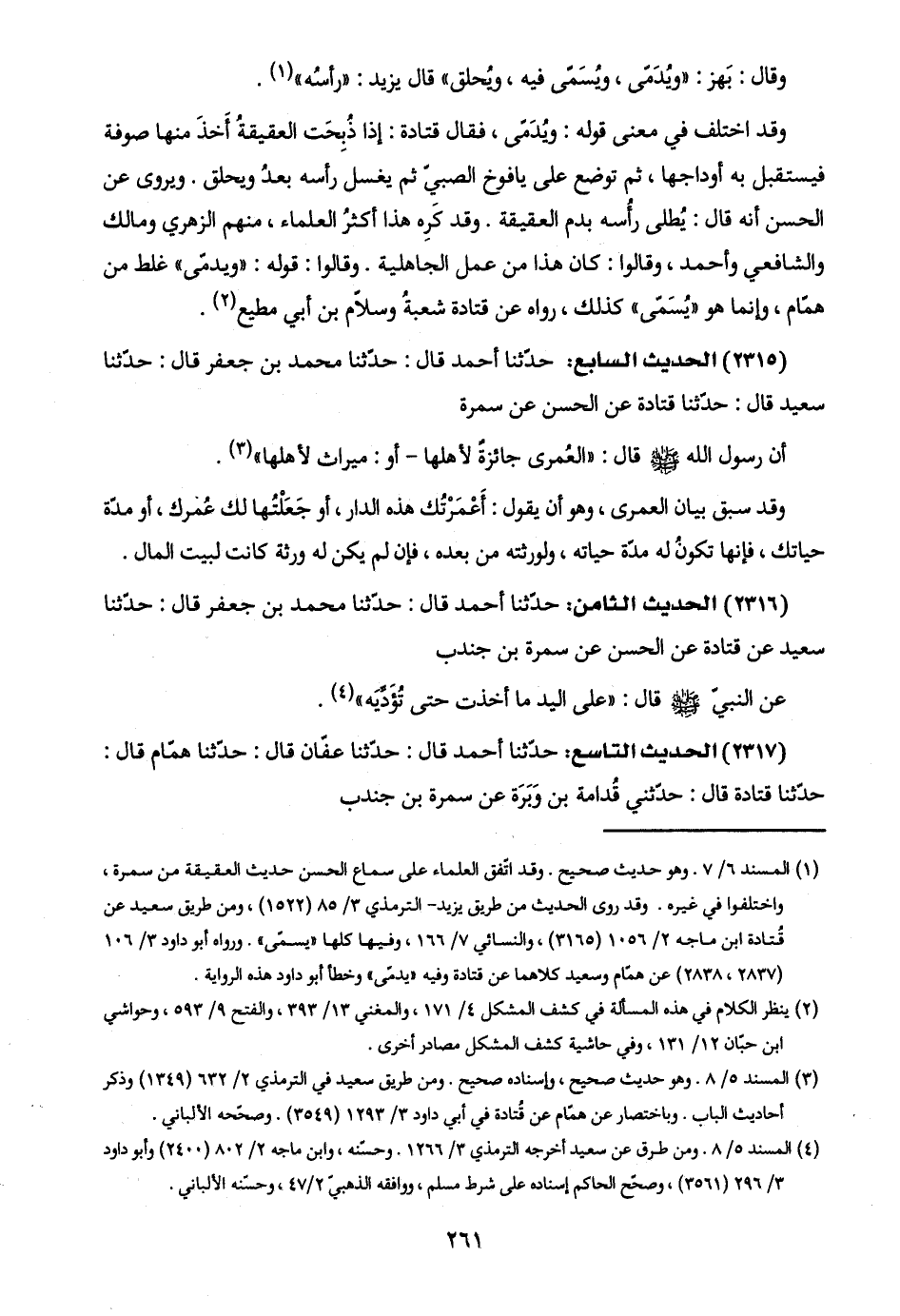 (٢٣١٥) الحديث السابع: حدّثنا أحمد قال: حدّثنا محمد بن جعفر قال: حدّثنا سعيد قال: حدّثنا قتادة عن الحسن عن سمرة: