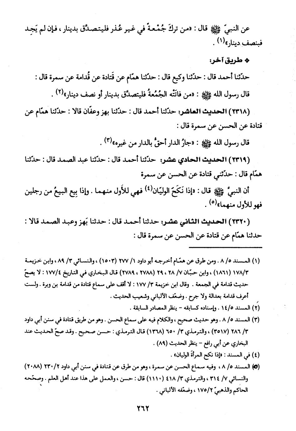 (٢٣١٩) الحديث الحادي عشر: حدّثنا أحمد قال: حدّثنا عبد الصمد قال: حدّثنا همّام قال: حدّثني قتادة عن الحسن عن سمرة: