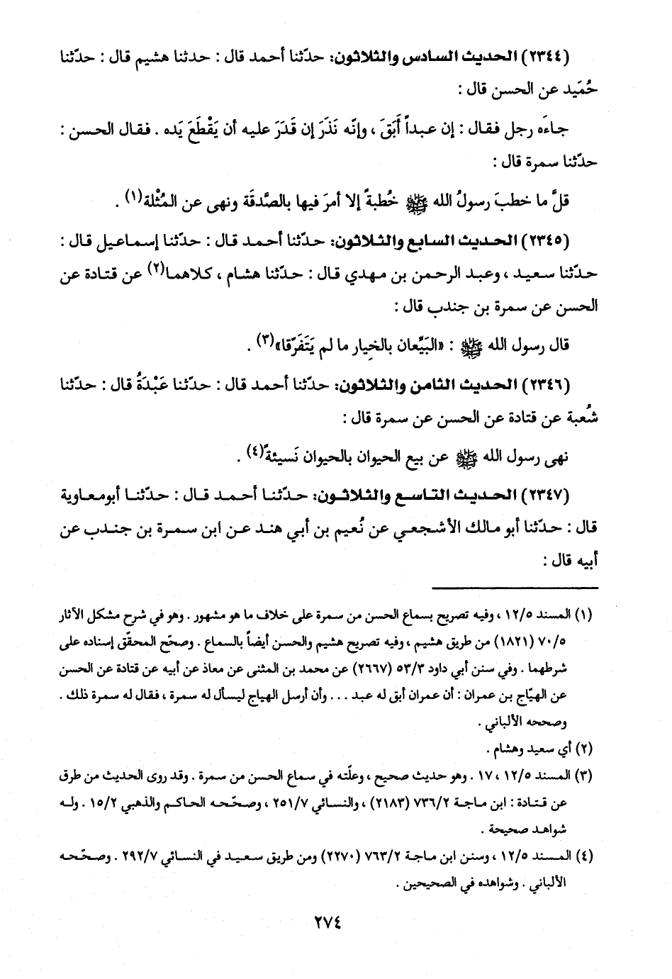 (٢٣٤٤) الحديث السادس والثلاثون: حدّثنا أحمد قال: حدّثنا هشيم قال: حدّثنا حُمَيد عن الحسن قال: