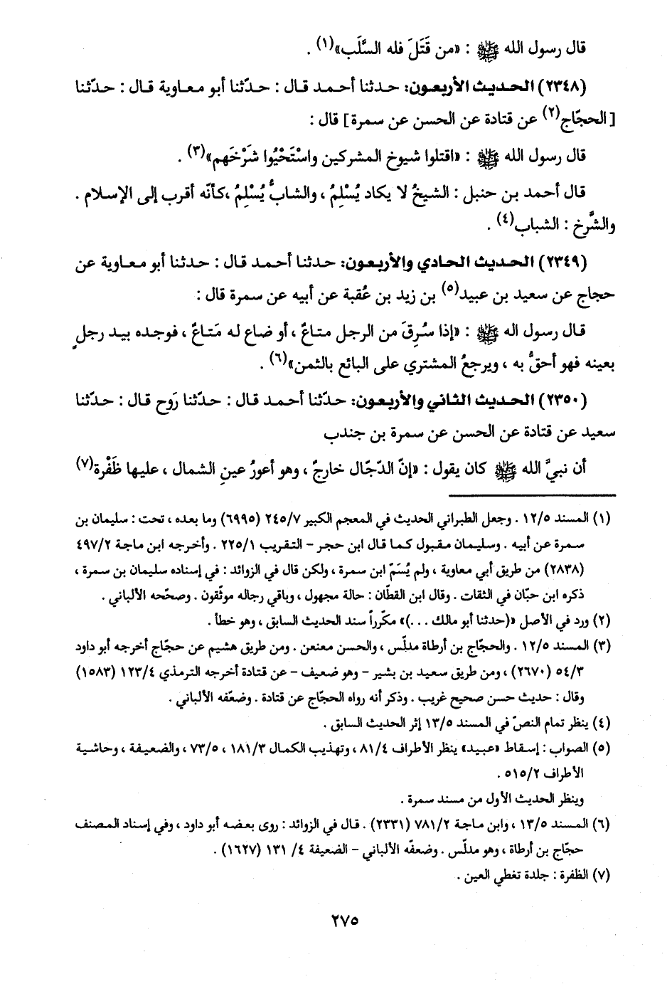 (٢٣٤٨) الحديث الأربعون: حدّثنا أحمد قال: حدّثنا أبو معاوية قال: حدّثنا [الحجّاج (٢) عن قتادة عن الحسن عن سمرة] قال: