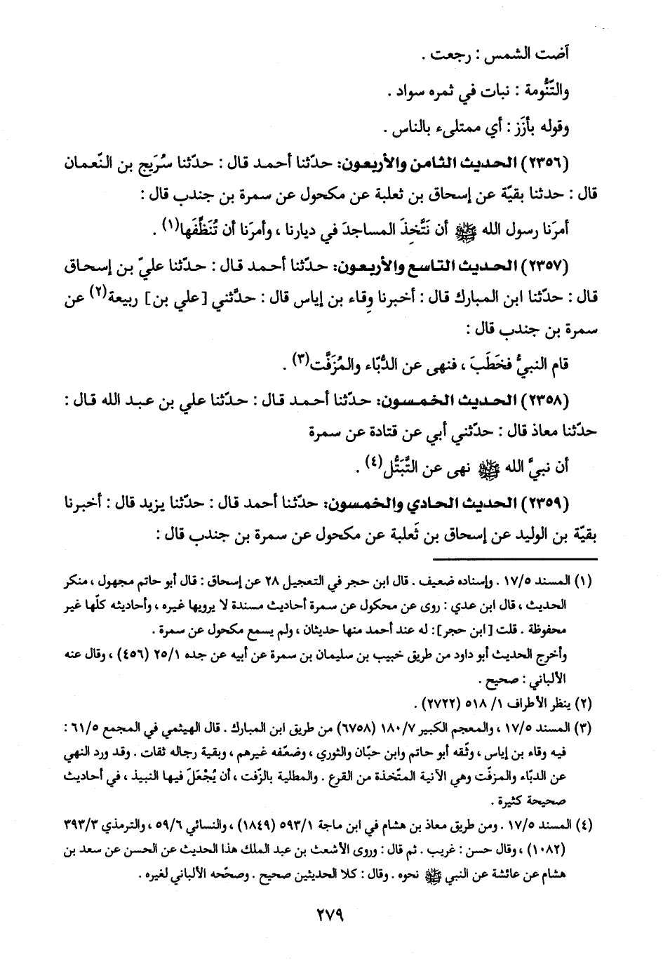 (٢٣٥٦) الحديث الثامن والأربعون: حدّثنا أحمد قال: حدّثنا سُرَيج بن النّعمان قال: حدّثنا بقيّة عن إسحاق بن ثعلبة عن مكحول عن سمرة بن جندب قال: