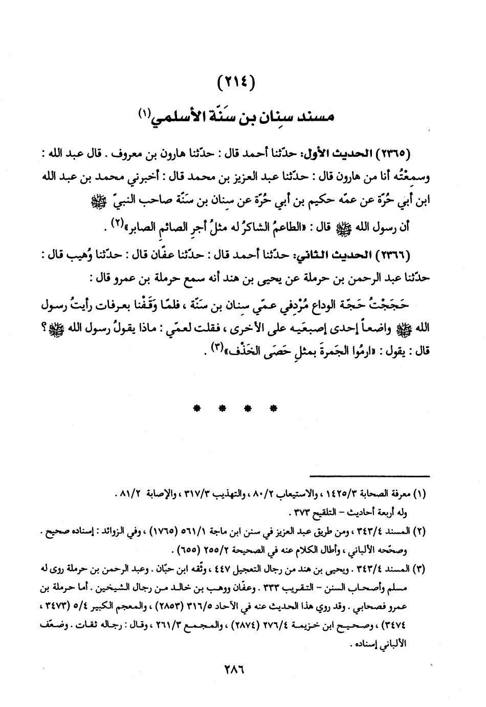 (٢١٤) مسند سنِان بن سَنّة الأسلمي (١)