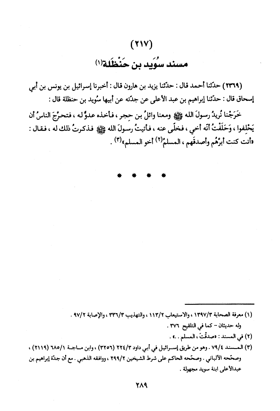 (٢١٧) مسند سُوَيد بن حَنْظَلة (١)