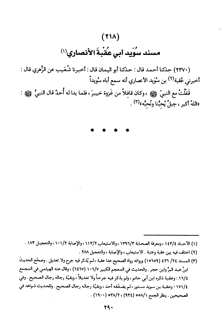 (٢١٨) مسند سُوَيد أبي عُقْبةَ الأنصاري (١)