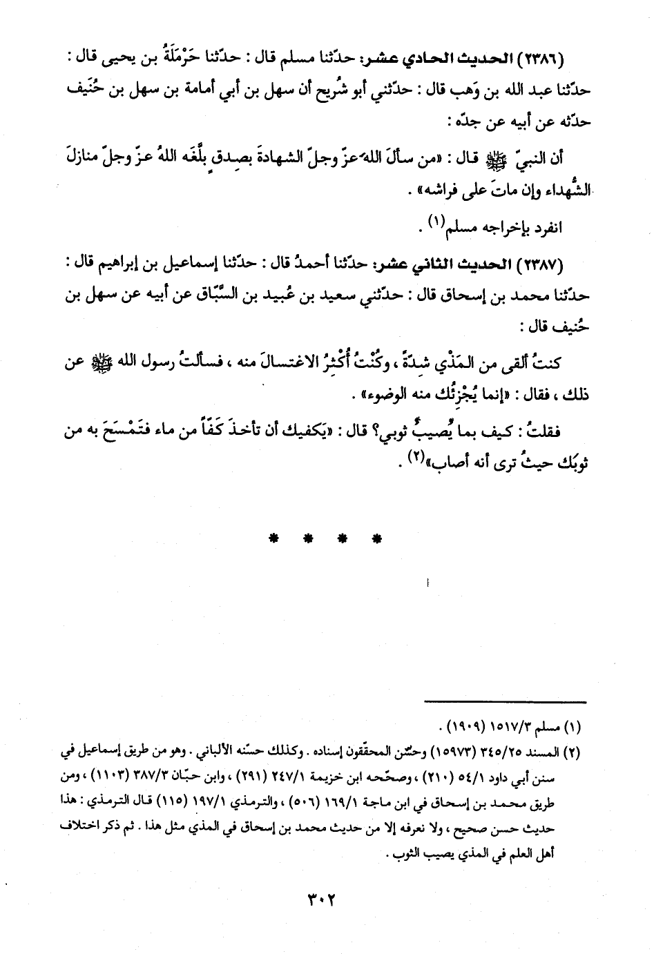 (٢) المسند ٢٥/ ٣٤٥ (١٥٩٧٣) وحسّن المحقّقون إسناده. وكذلك حسّنه الألباني. وهو من طريق إسماعيل في سنن أبي داود ١/ ٥٤ (٢١٠)، وصحّحه ابن خزيمة ١/ ٢٤٧ (٢٩١)، وابن حبّان ٣/ ٣٨٧ (١١٠٣)، ومن طريق محمد بن إسحاق في ابن ماجة ١/ ١٦٩ (٥٠٦)، والترمذي ١/ ١٩٧ (١١٥) قال الترمذي: هذا حديث حسن صحيح، ولا نعرفه إلا من حديث محمد بن إسحاق في المذي مثل هذا. ثم ذكر اختلاف أهل العلم في المذي يصيب الثوب.