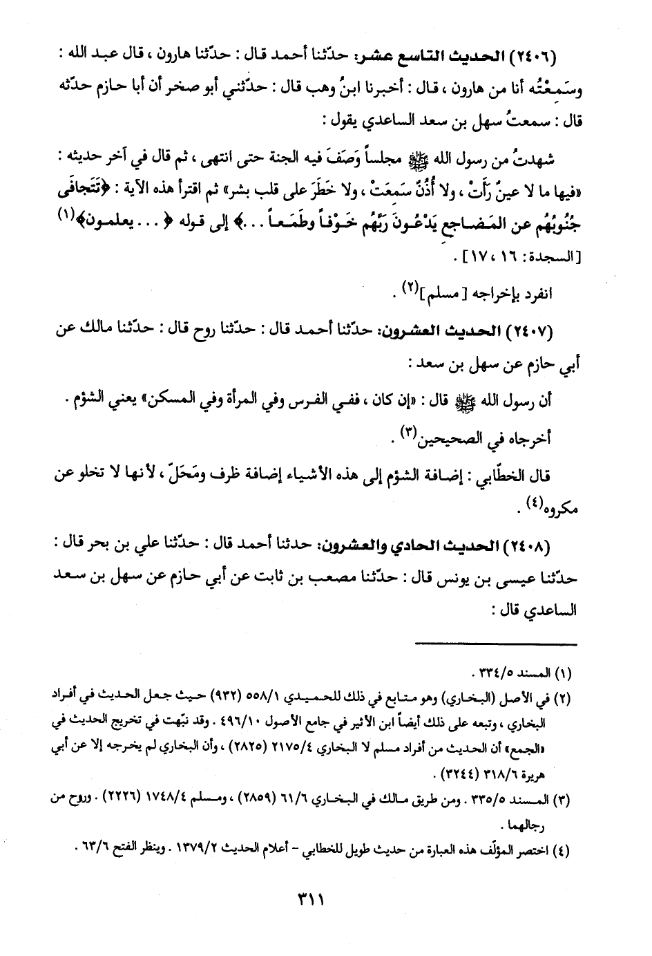 (٢٤٠٨) الحديث الحادي والعشرون: حدّثنا أحمد قال: حدّثنا علي بن بحر قال: حدّثنا عيسى بن يونس قال: حدّثنا مصعب بن ثابت عن أبي حازم عن سهل بن سعد الساعدي قال: