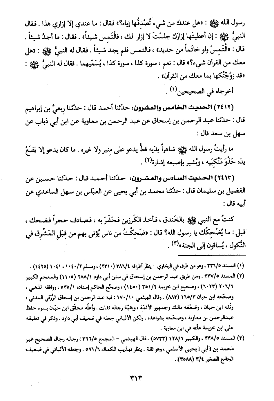 (٢٤١٢) الحديث الخامس والعشرون: حدّثنا أحمد قال: حدّثنا رِبعيُّ بن إبراهيم قال: حدّثنا عبد الرحمن بن إسحاق عن عبد الرحمن بن معاوية عن ابن أبي ذباب عن سهل بن سعد قال: