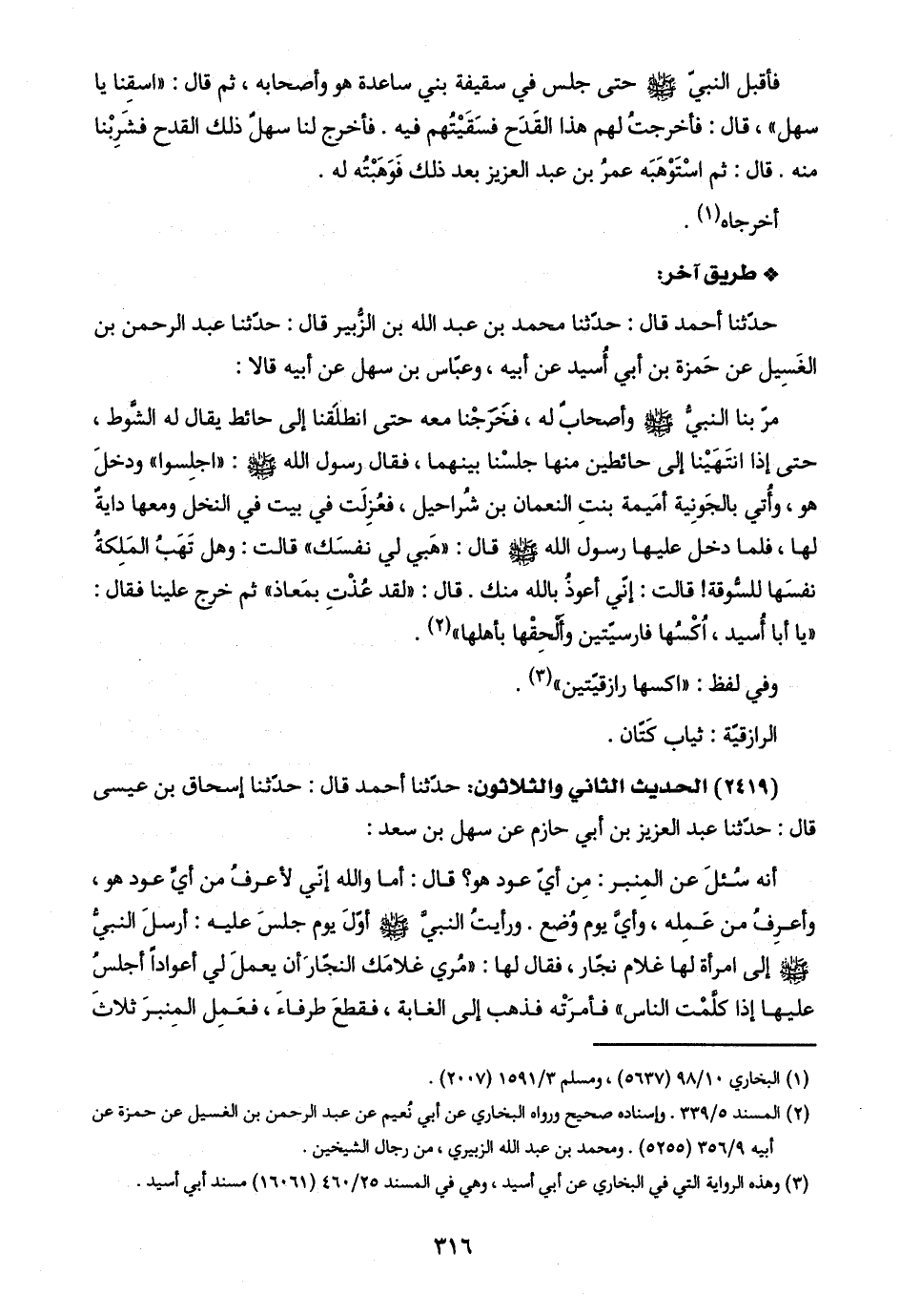 (٣) وهذه الرواية التي في البخاري عن أبي أسيد، وهي في المسند ٢٥/ ٤٦٠ (١٦٠٦١) مسند أبي أسيد.
