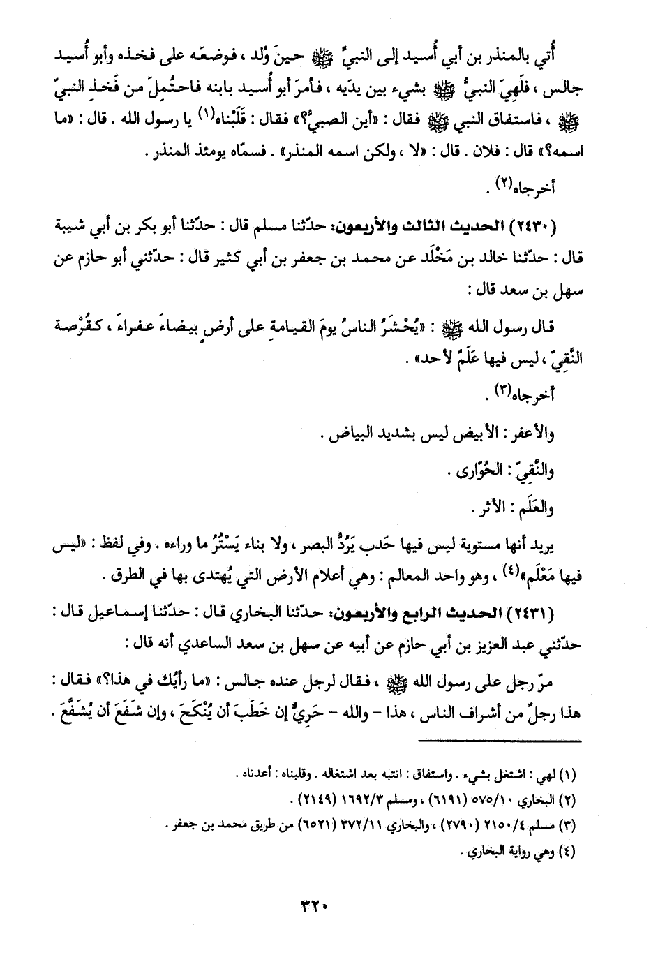 (٢٤٣٠) الحديث الثالث والأربعون: حدّثنا مسلم قال: حدّثنا أبو بكر بن أبي شيبة قال: حدّثنا خالد بن مَخْلَد عن محمد بن جعفر بن أبي كثير قال: حدّثني أبو حازم عن سهل بن سعد قال: