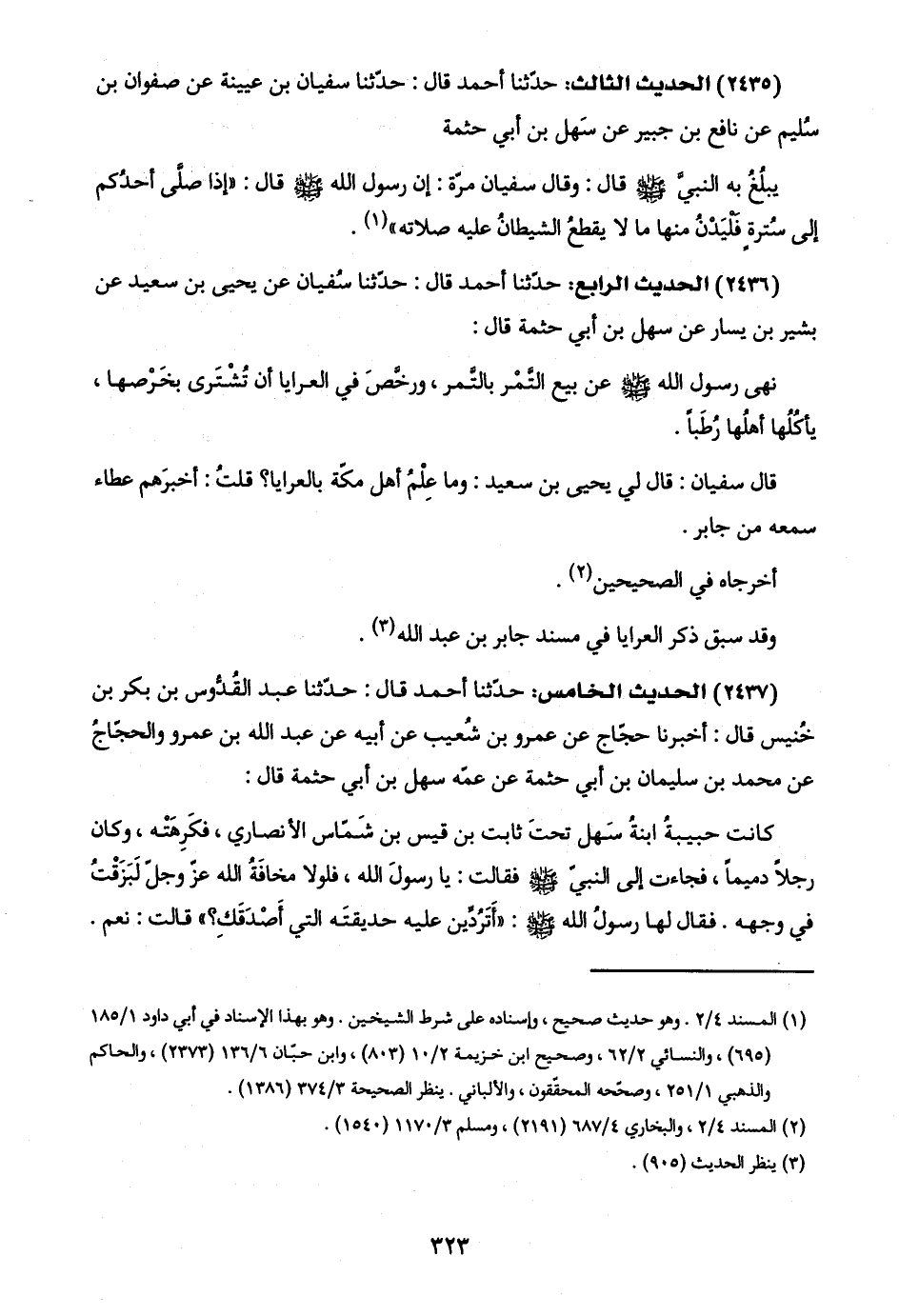 (٢٤٣٧) الحديث الخامس: حدّثنا أحمد قال: حدّثنا عبد القُدُّوس بن بكر بن خُنيس قال: أخبرنا حجّاج عن عمرو بن شُعيب عن أبيه عن عبد اللَّه بن عمرو والحجّاجُ عن محمد بن سليمان بن أبي حثمة عن عمّه سهل بن أبي حثمة قال: