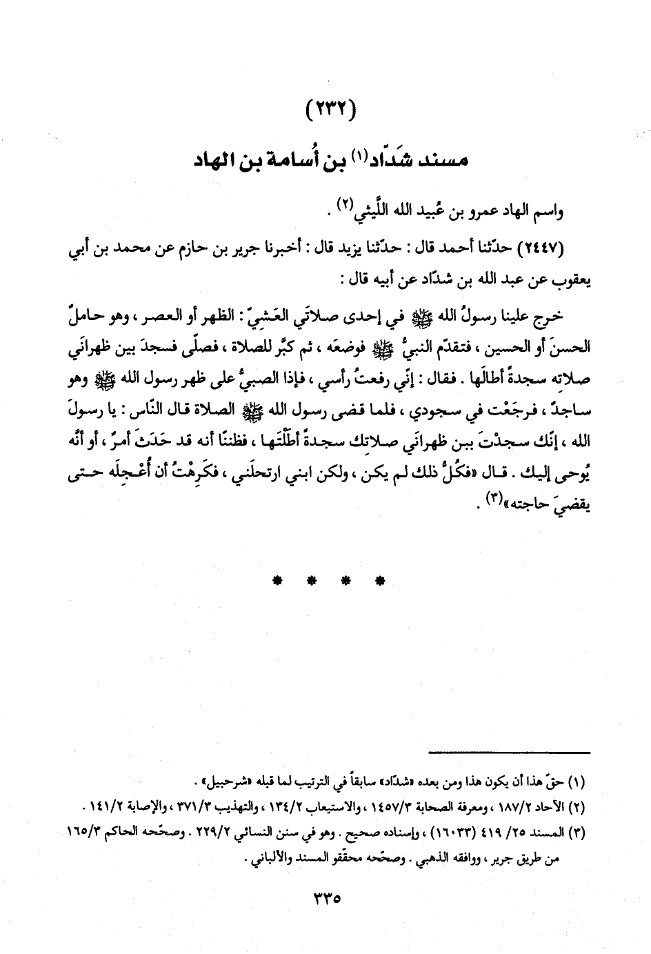 (٢٣٢) مسند شَدّاد (١) بن أُسامة بن الهاد