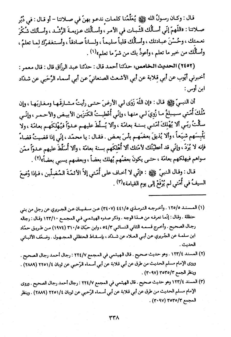 (٢٤٥٢) الحديث الخامس: حدّثنا أحمد قال: حدّثنا عبد الرزّاق قال: قال معمر: أخبرني أيّوب عن أبي قلابة عن أبي الأشعث الصنعانيّ عن أبي أسماء الرَّحَبي عن شدّاد ابن أوس: