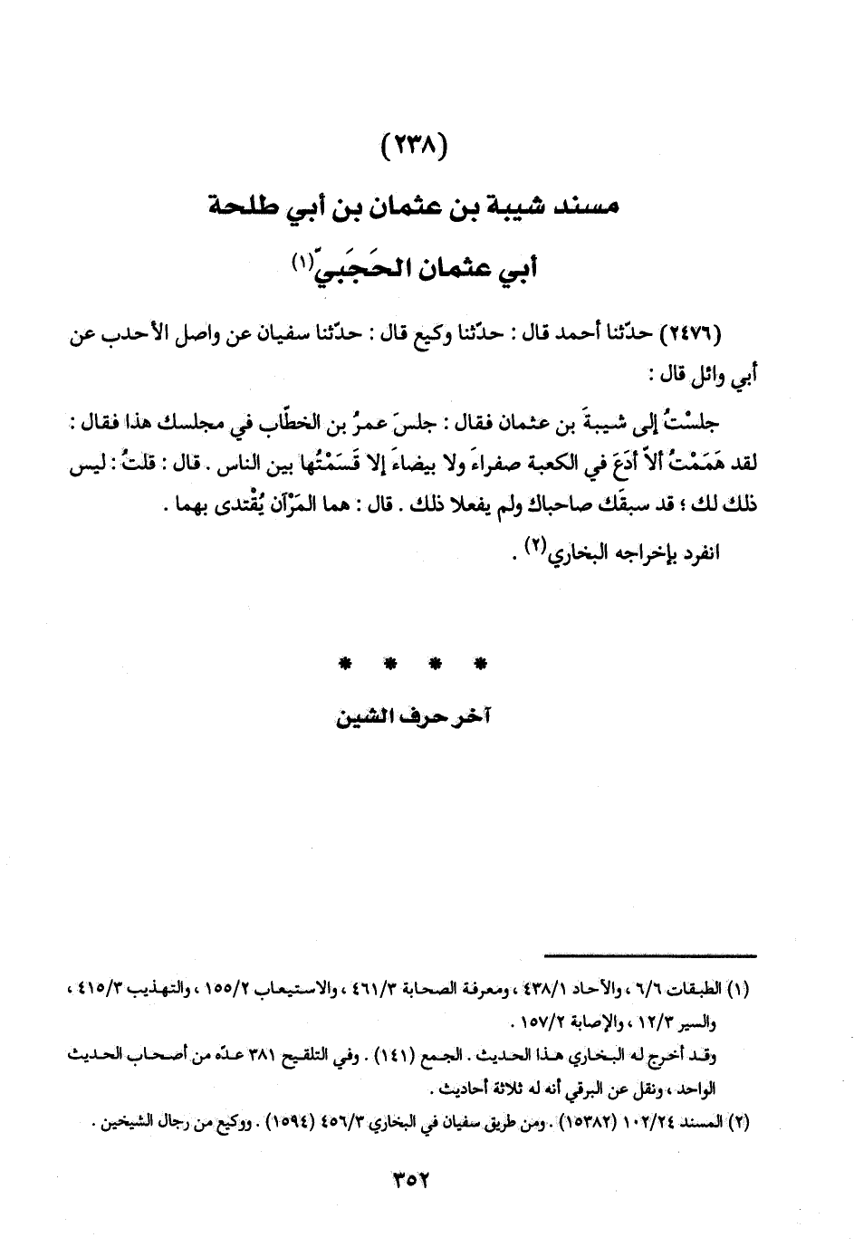 (٢٣٨) مسند شيبة بن عثمان بن أبي طلحة أبي عثمان الحَجَبيّ (١)