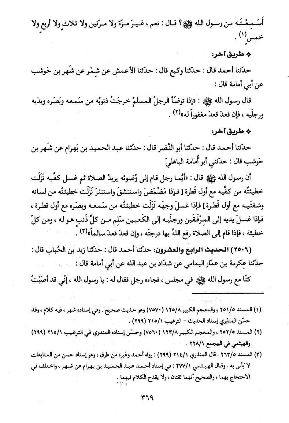 حدّثنا أحمد قال: حدّثنا أبو النَّضر قال: حدّثنا عبد الحميد بن بَهرام عن شَهر بن حَوشب قال: حدّثني أبو أَمامة الباهليّ: