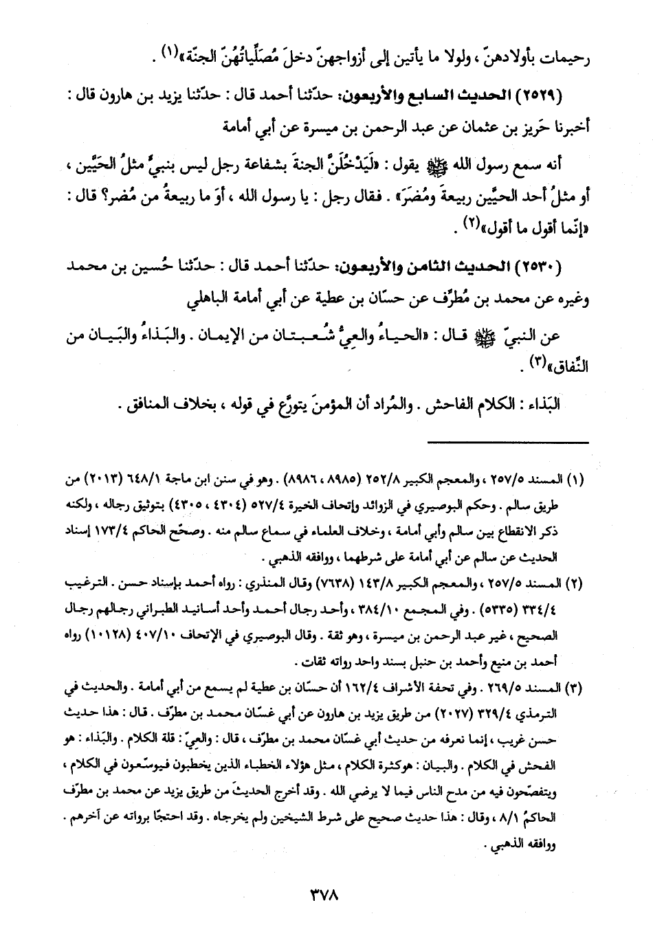 (٢٥٣٠) الحديث الثامن والأربعون: حدّثنا أحمد قال: حدّثنا حُسين بن محمد وغيره عن محمد بن مُطرِّف عن حسّان بن عطية عن أبي أمامة الباهلي: