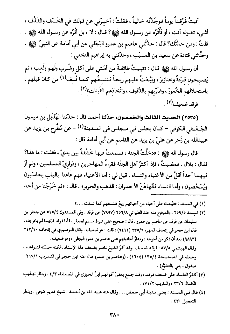 (٢) المسند ٥/ ٢٥٩. والمرفوع منه عند الطبراني ٨/ ٢٥٦ (٧٩٩٧) عن فرقد. وفي المستدرك ٤/ ٥١٥ عن جعفر بن سليمان عن فرقد عن عاصم بن عمرو. قال: صحيح على شرط مسلم لجعفر، فأما فرقد فإنهما لم يخرجاه. قال ابن حجر في إتحاف المهرة ٦/ ٢٣٥ (٦٤١١): قلت: هو ضعيف. وقال البوصيري في إتحاف ١٠/ ٢٤٢ (٩٨٩٣) بعد أن ذكر من أخرجه: ومدارُ أحاديثهم على عاصم بن عمرو البجلي، وهو ضعيف.