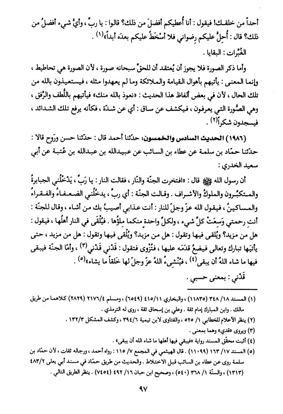(٥) المسند ١٧/ ١٦٣ (١١٠٩٩). قال الهيثمي في المجمع ٧/ ١١٥: رواه أحمد، ورجاله ثقات، لأن حمّاد بن سلمة روى عن عطاء بن السائب قبل الاختلاط. والحديث من طريق حمّاد في مسند أبي يعلى ٢/ ٤٨٣ (١٣١٣)، والسنّة ١/ ٣٦٨ (٥٤٠)، وصحيح ابن حبان ١٦/ ٤٩٢ (٧٤٥٤). ينظر الطريق التالي.