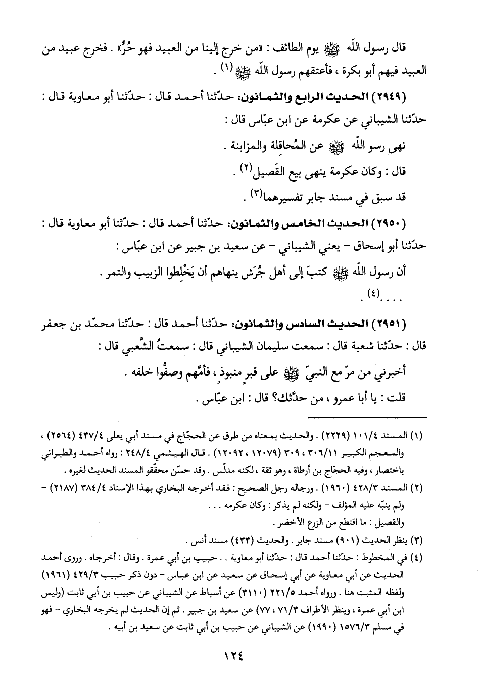 (٢٩٤٩) الحديث الرابع والثمانون: حدّثنا أحمد قال: حدّثنا أبو معاوية قال: حدّثنا الشيباني عن عكرمة عن ابن عبّاس قال: