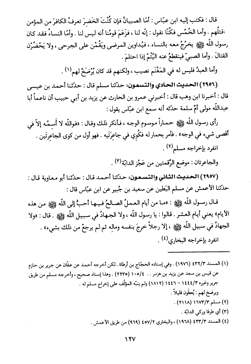 (١) المسند ٣/ ٤٣٢ (١٩٧٦). وفي إسناده الحجّاج بن أرطاة. لكن أخرجه أحمد عن عفّان عن جرير بن حازم عن قيس بن سعد عن يزيد بن هزمر. . ٤/ ١٠٥ (٢٢٣٥). وهذا إسناد صحيح، وأخرجه مسلم من طريق جرير وغيره ٣/ ١٤٤٤ - ١٤٤٦ (١٨١٢) ولم ينته المؤلّف على إخراج مسلم له.