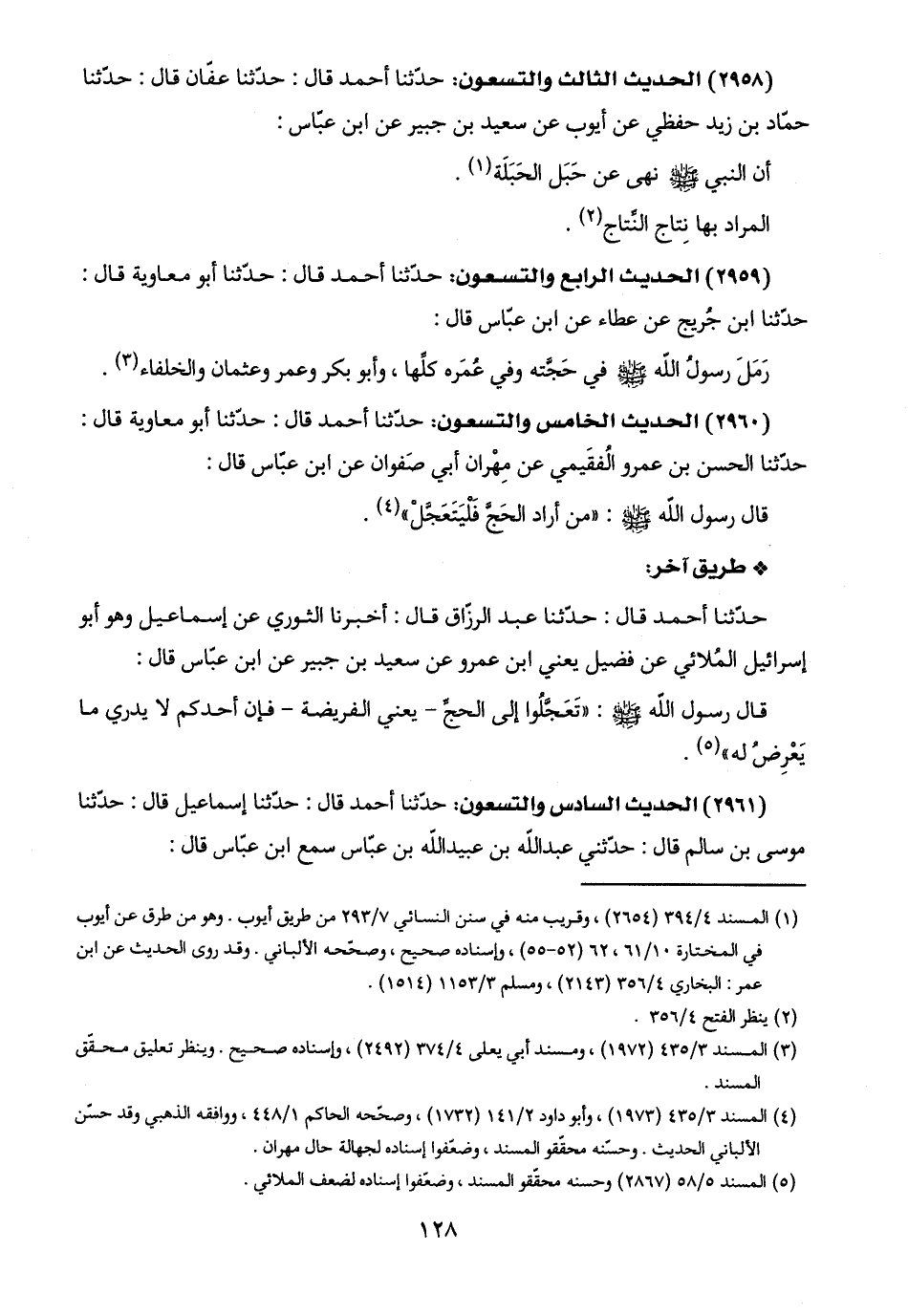 (٥) المسند ٥/ ٥٨ (٢٨٦٧) وحسنه محقّقو المسند، وضعّفوا إسناده لضعف الملائي.