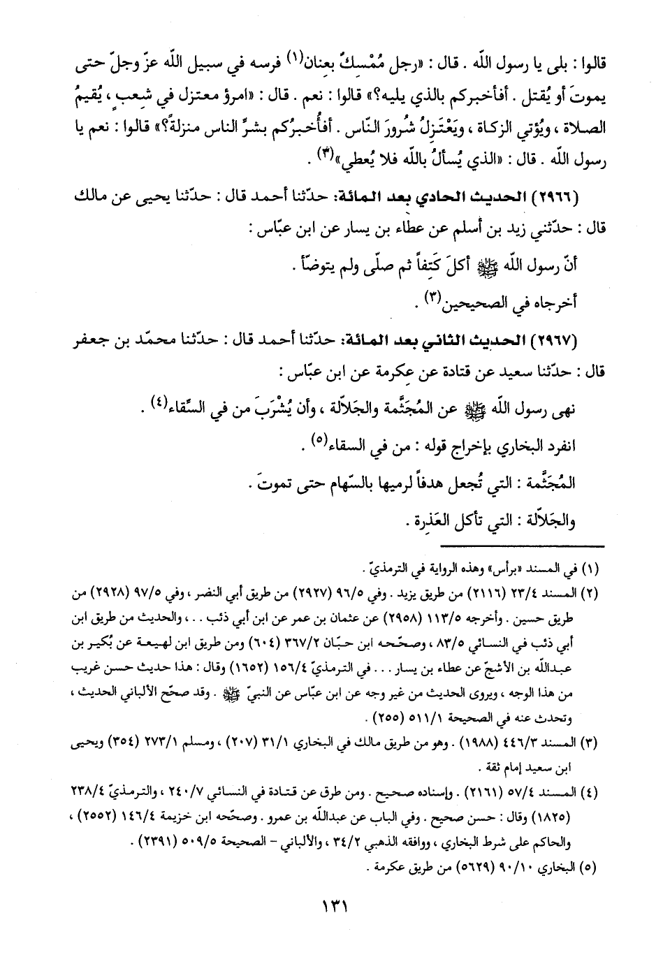 (٢٩٦٦) الحديث الحادي بعد المائة: حدّثنا أحمد قال: حدّثنا يحيى عن مالك قال: حدّثني زيد بن أسلم عن عطاء بن يسار عن ابن عبّاس: