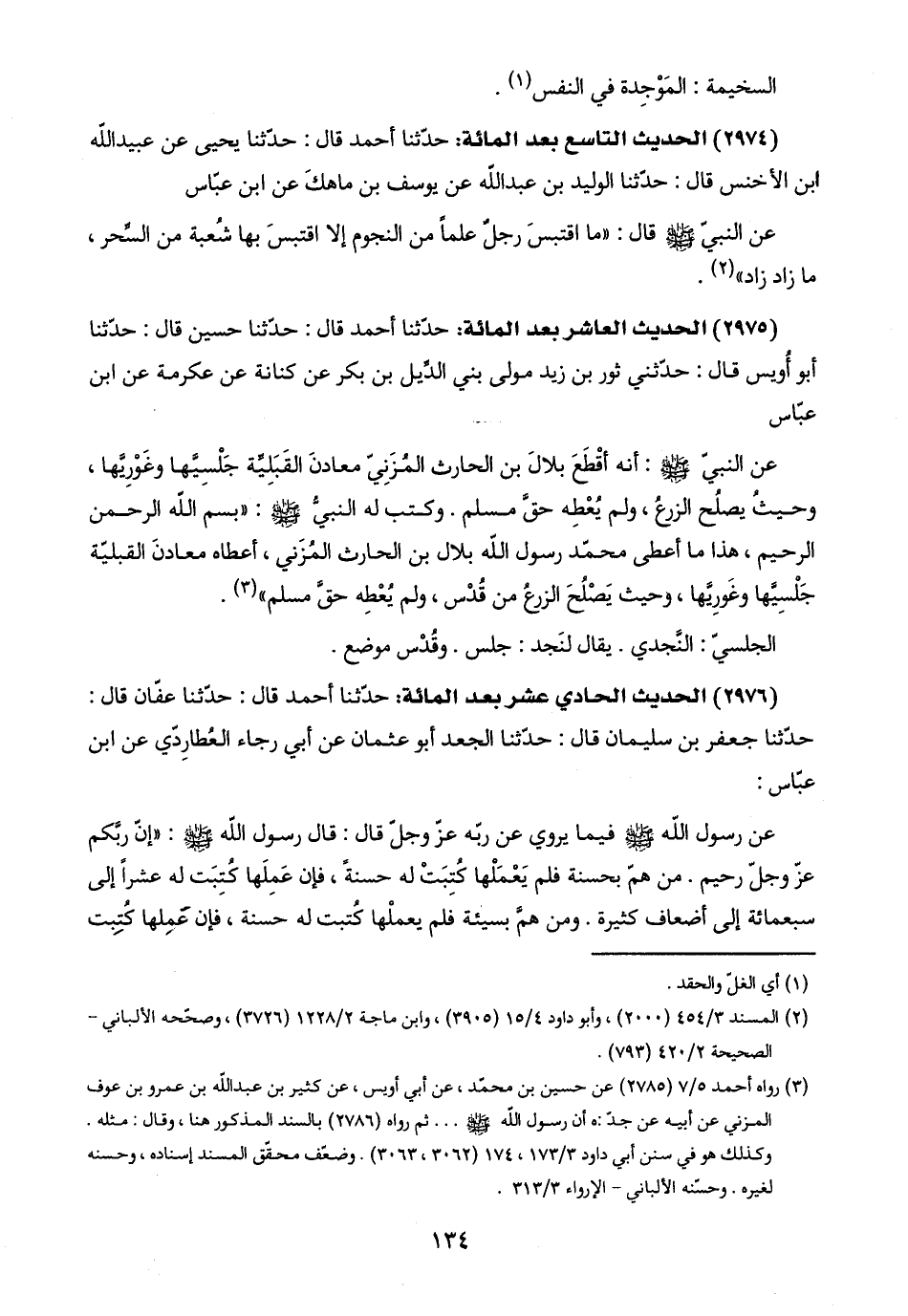(٢) المسند ٣/ ٤٥٤ (٢٠٠٠)، وأبو داود ٤/ ١٥ (٣٩٠٥)، وابن ماجة ٢/ ١٢٢٨ (٣٧٢٦)، وصحّحه الألباني - الصحيحة ٢/ ٤٢٠ (٧٩٣).
