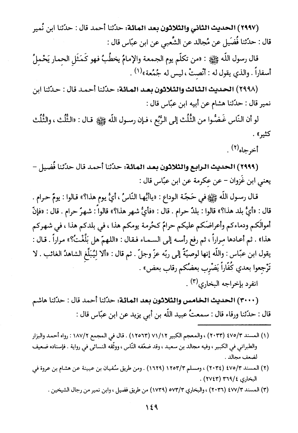 (٢٩٩٧) الحديث الثاني والثلاثون بعد المائة: حدّثنا أحمد قال: حدّثنا ابن نُمير قال: حدّثنا فضَيل عن مُجالد عن الشَّعبي عن ابن عبّاس قال: