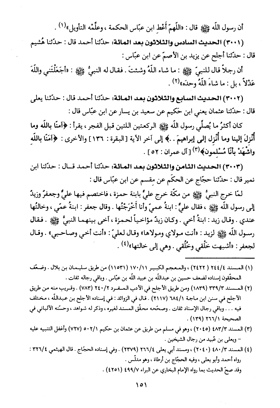 (٣٠٠١) الحديث السادس والثلاثون بعد المائة: حدّثنا أحمد قال: حدّثنا هُشيم قال: حدّثنا أجلح عن يزيد بن الأصمّ عن ابن عبّاس: