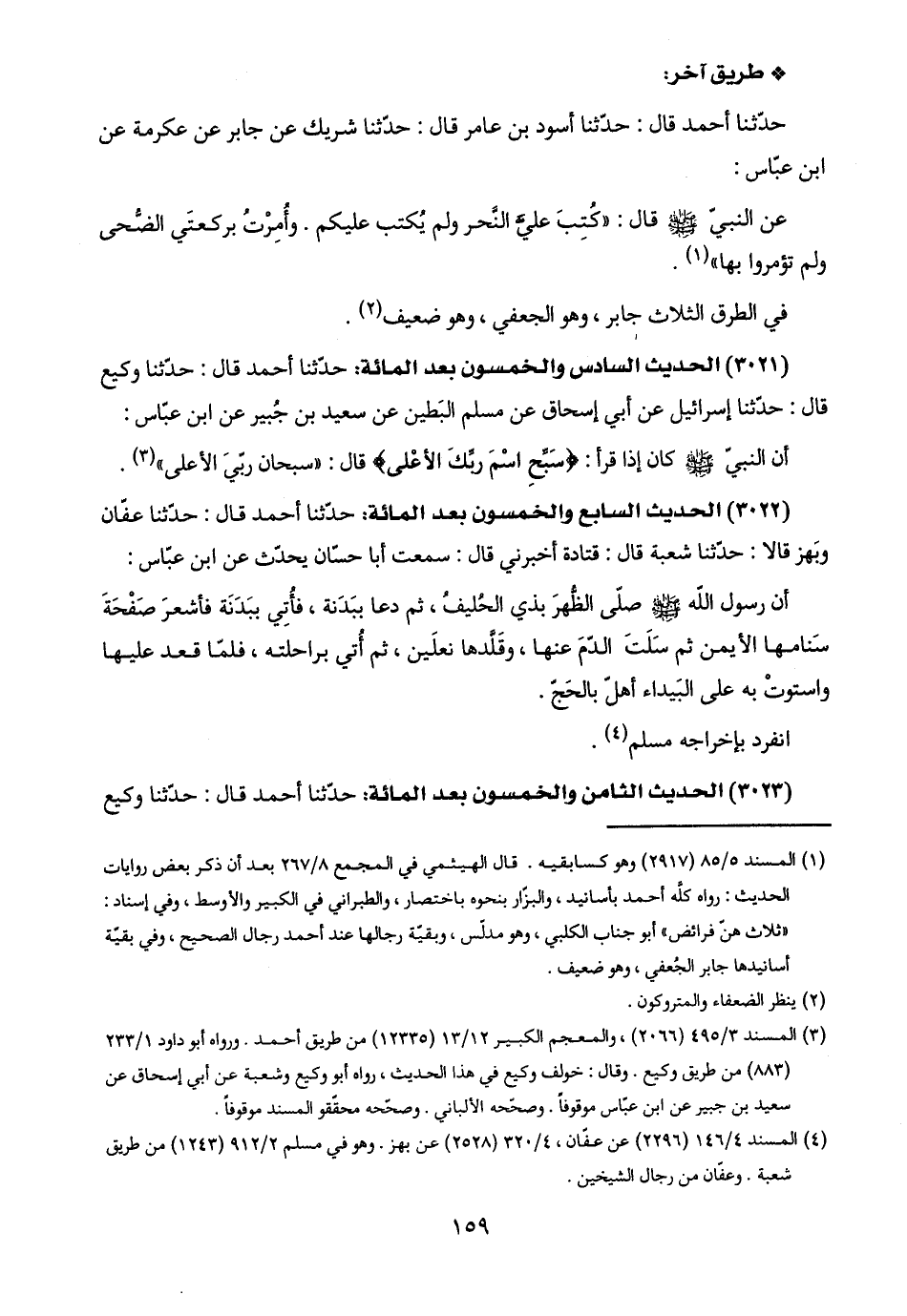(٣٠٢١) الحديث السادس والخمسون بعد المائة: حدّثنا أحمد قال: حدّثنا وكيع قال: حدّثنا إسرائيل عن أبي إسحاق عن مسلم البَطين عن سعيد بن جُبير عن ابن عبّاس: