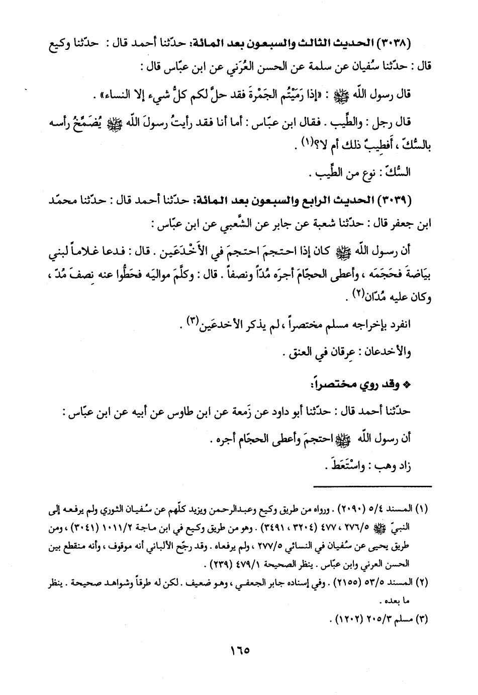 (١) المسند ٤/ ٥ (٢٠٩٠). ورواه من طريق وكيع وعبد الرحمن ويزيد كلّهم عن سُفيان الثوري ولم يرفعه إلى النبيّ -صلى اللَّه عليه وسلم- ٥/ ٢٧٦، ٤٧٧ (٣٢٠٤، ٣٤٩١). وهو من طريق وكيع في ابن ماجة ٢/ ١٠١١ (٣٠٤١)، ومن طريق يحيى عن سُفيان في النسائي ٥/ ٢٧٧، ولم يرفعاه. وقد رجّح الألباني أنّه موقوف، وأنه منقطع بين الحسن العرني وابن عبّاس. ينظر الصحيحة ١/ ٤٧٩ (٢٣٩).
