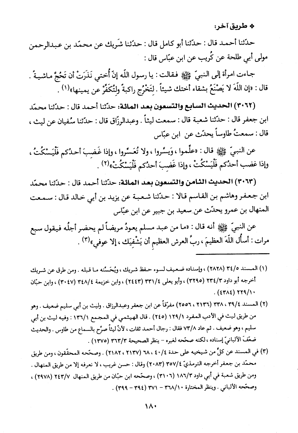 (٣٠٦٣) الحديث الثامن والتسعون بعد المائة: حدّثنا أحمد قال: حدّثنا محمّد ابن جعفر وهاشم بن القاسم قالا: حدّثنا شعبة عن يزيد بن أبي خالد قال: سمعت المنهال بن عمرو يحدّث عن سعيد بن جبير عن ابن عبّاس: