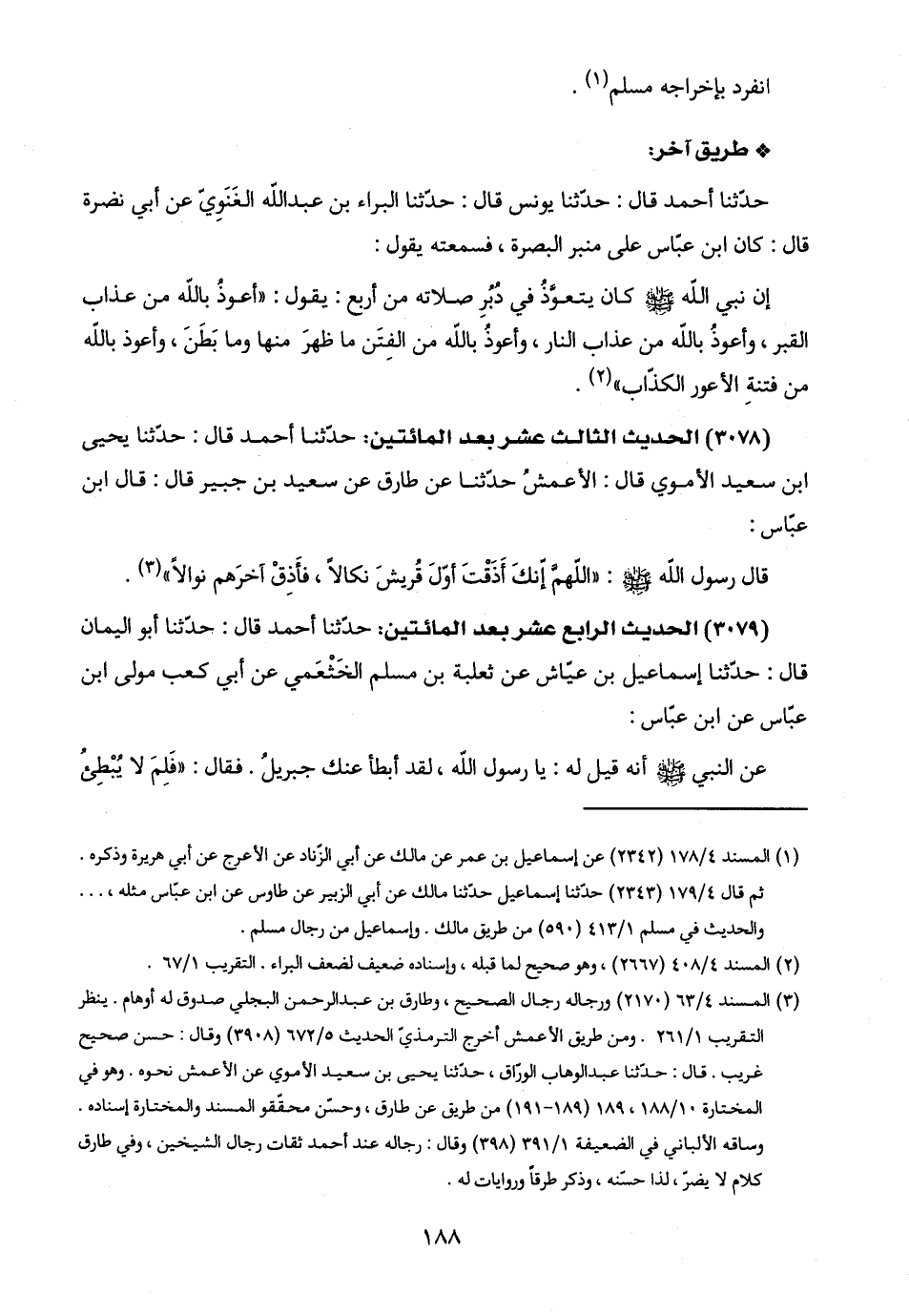 (٣٠٧٨) الحديث الثالث عشر بعد المائتين: حدّثنا أحمد قال: حدّثنا يحيى ابن سعيد الأموي قال: الأعمشُ حدّثنا عن طارق عن سعيد بن جبير قال: قال ابن عبّاس: