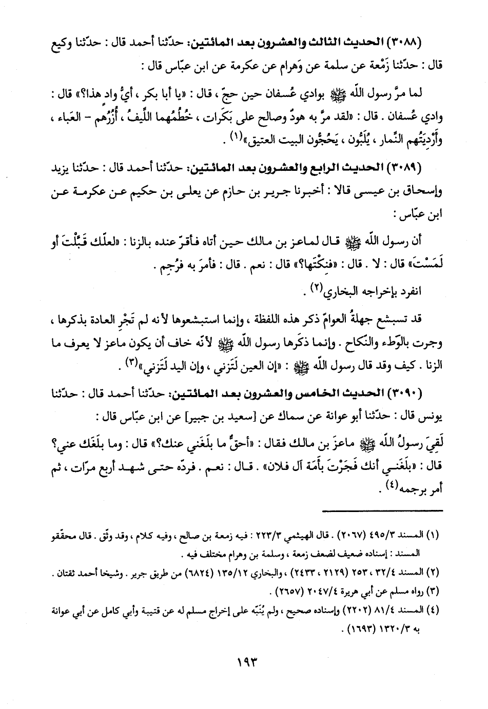 (٣٠٨٨) الحديث الثالث والعشرون بعد المائتين: حدّثنا أحمد قال: حدّثنا وكيع قال: حدّثنا زَمْعة عن سلمة عن وَهرام عن عكرمة عن ابن عبّاس قال: