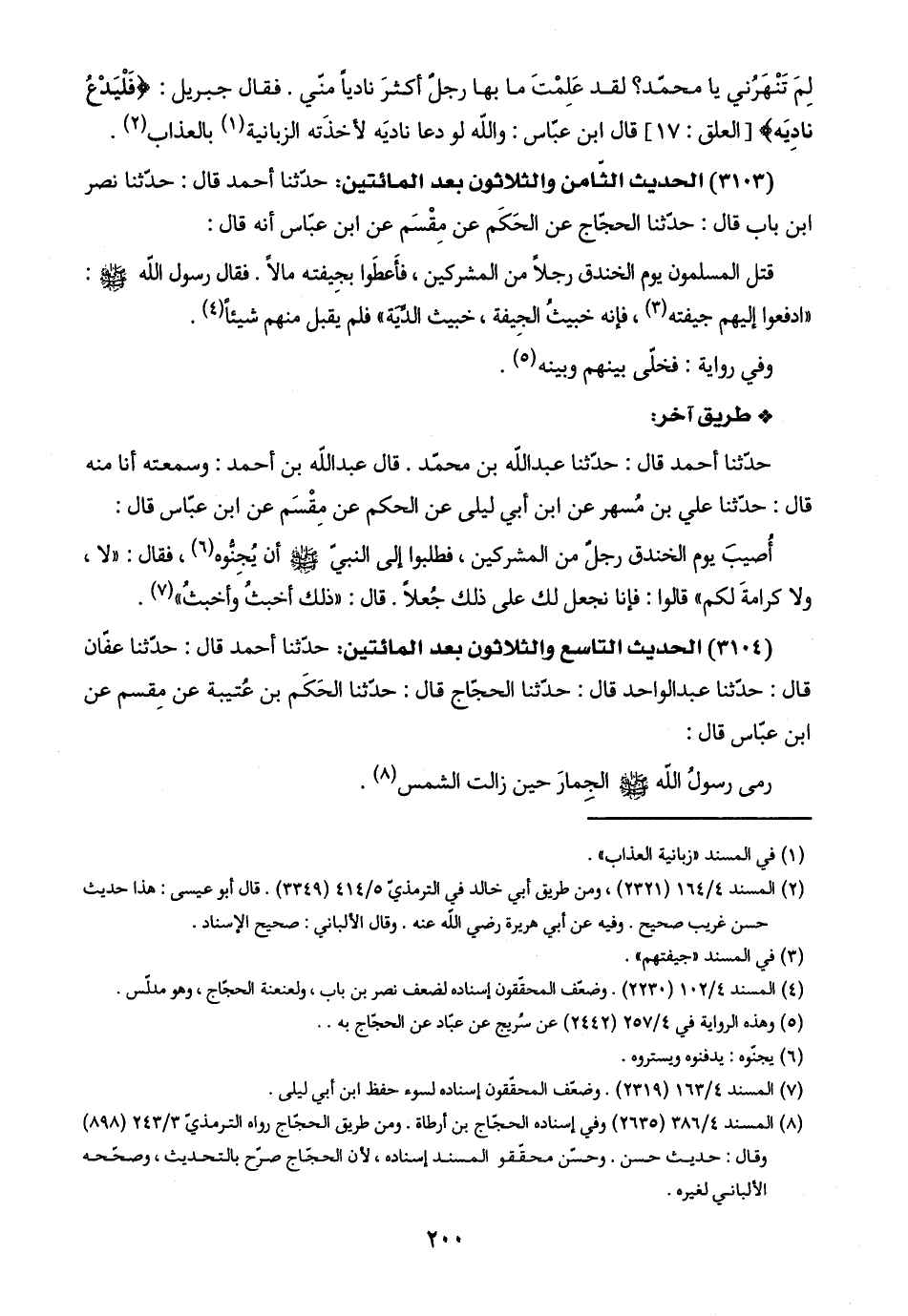 (٣١٠٣) الحديث الثامن والثلاثون بعد المائتين: حدّثنا أحمد قال: حدّثنا نصر ابن باب قال: حدّثنا الحجّاج عن الحَكَم عن مِقْسَم عن ابن عبّاس أنّه قال: