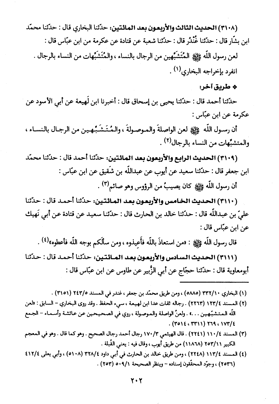 (٣١٠٩) الحديث الرابع والأربعون بعد المائتين: حدّثنا أحمد قال: حدّثنا محمّد ابن جعفر قال: حدّثنا سعيد عن أيوب عن عبد اللَّه بن شَقيق عن ابن عبّاس: