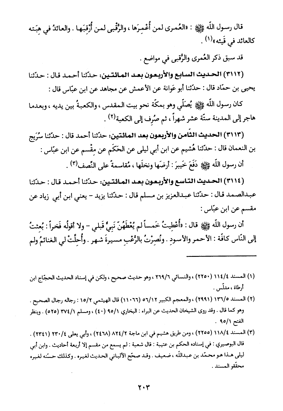 (٣١١٣) الحديث الثامن والأربعون بعد المائتين: حدّثنا أحمد قال: حدّثنا سُرَيج بن النعمان قال: حدّثنا هُشيم عن ابن أبي ليلى عن الحَكَم عن مِقْسم عن ابن عبّاس: