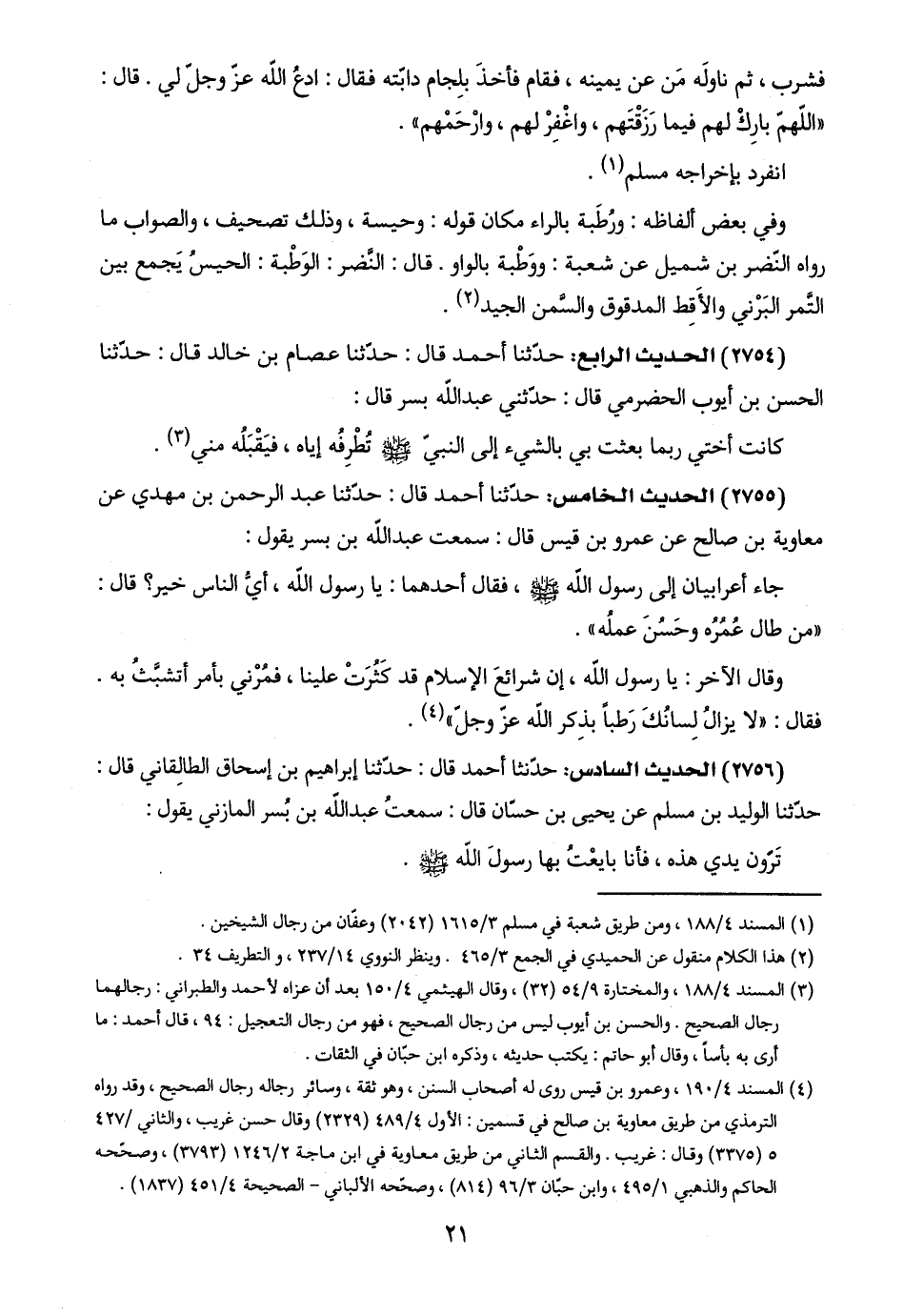 (٢٧٥٤) الحديث الرابع: حدّثنا أحمد قال: حدّثنا عصام بن خالد قال: حدّثنا الحسن بن أيوب الحضرمي قال: حدّثني عبد اللَّه بسر قال: