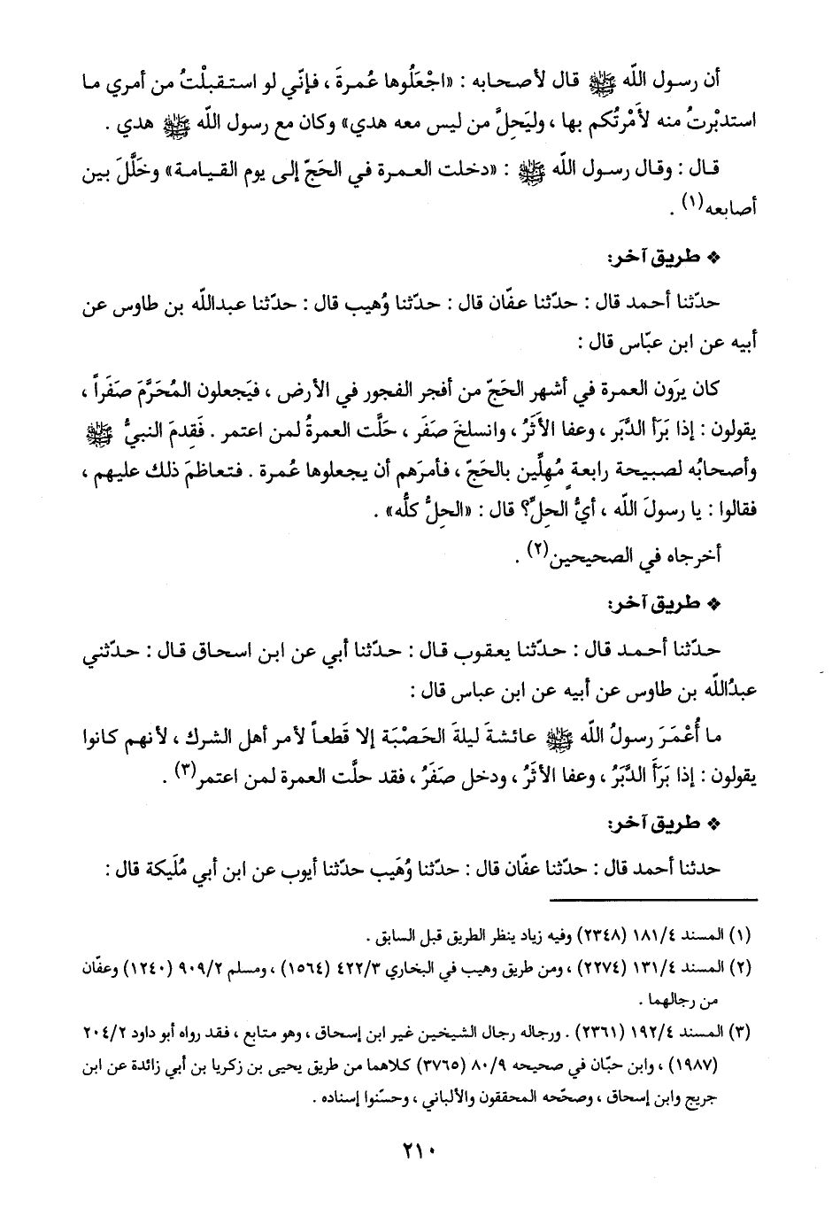 حدّثنا أحمد قال: حدّثنا عفّان قال: حدّثنا وُهيب قال: حدّثنا عبد اللَّه بن طاوس عن أبيه عن ابن عبّاس قال: