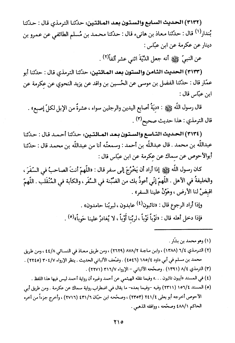 (٣١٣٣) الحديث الثامن والستون بعد المائتين: حدّثنا الترمذي قال: حدّثنا أبو عمّار قال: حدّثنا الفضل بن موسى عن الحُسين بن واقد عن يزيد النحوي عن عِكرمة عن ابن عبّاس قال: