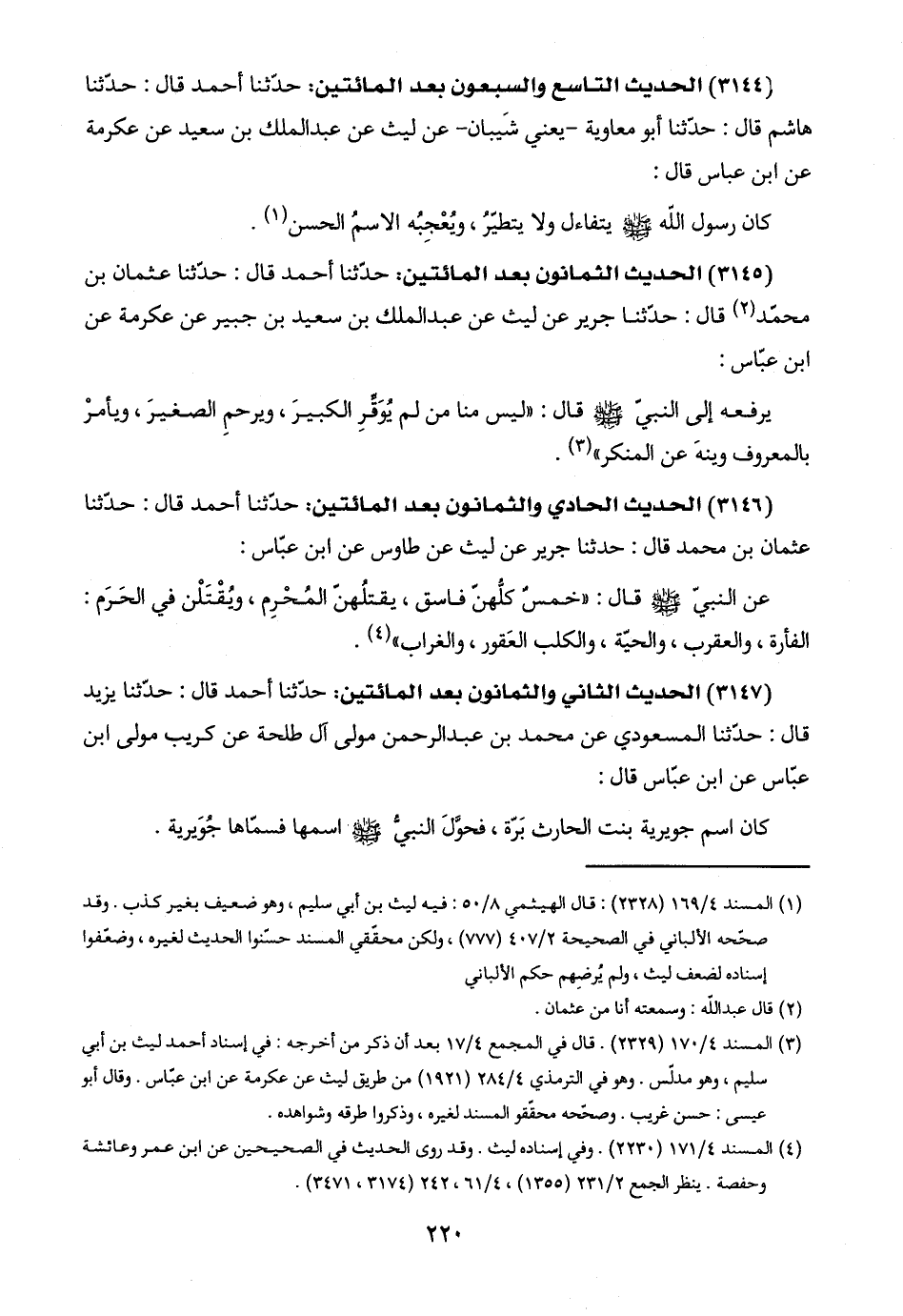(٣١٤٦) الحديث الحادي والثمانون بعد المائتين: حدّثنا أحمد قال: حدّثنا عثمان بن محمد قال: حدّثنا جرير عن ليث عن طاوس عن ابن عبّاس: