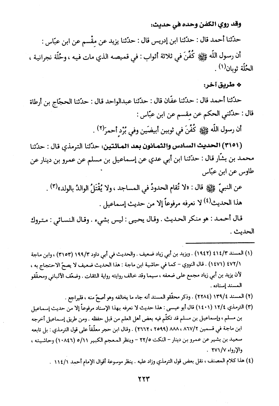 (١) المسند ٣/ ٤١٤ (١٩٤٢). ويزيد بن أبي زياد ضعيف. والحديث في أبي داود ٣/ ١٩٩ (٣١٥٣)، وابن ماجة ١/ ٤٧٢ (١٤٧١). قال النووي - كما في حاشية ابن ماجة: هذا الحديث ضعيف لا يصحّ الاحتجاج به، لأن يزيد بن أبي زياد مجمع على ضعفه، سيما وقد خالف روايته رواية الثقات. وضعّف الألباني ومحقّقو المسند إسناده.