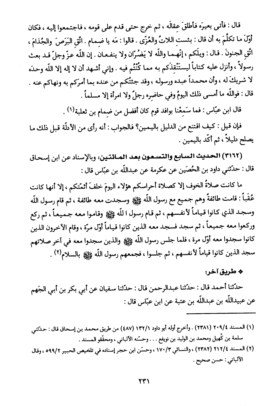 (٢) المسند ٤/ ٢١٢ (٢٣٨٢)، والنسائي ٣/ ١٧٠، وحسّن ابن حجر إسناده في تلخيص الحبير ٢/ ٥٩٩، وقال الألباني: حسن صحيح.