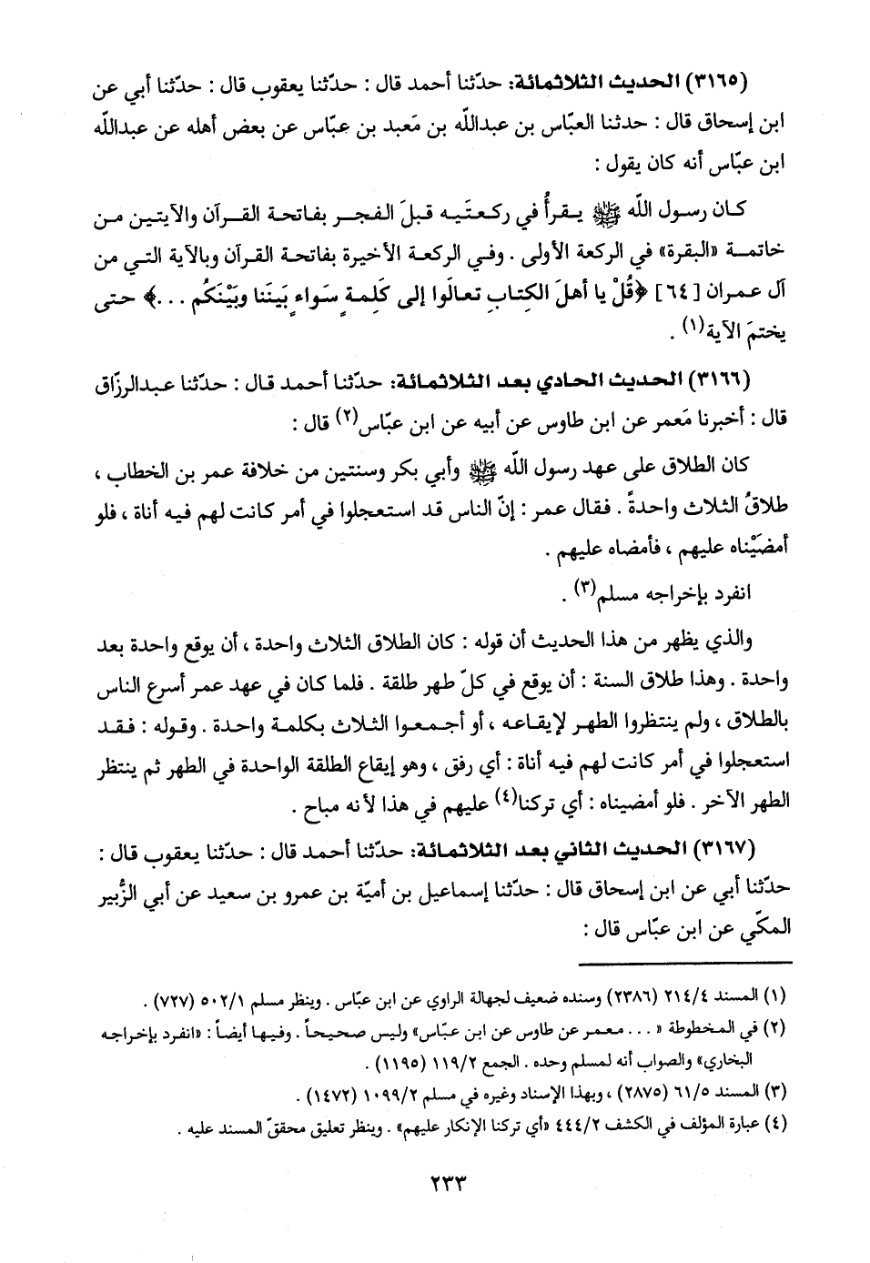 (٣١٦٥) الحديث الثلاثمائة: حدّثنا أحمد قال: حدّثنا يعقوب قال: حدّثنا أبي عن ابن إسحاق قال: حدّثنا العبّاس بن عبد اللَّه بن مَعبد بن عبّاس عن بعض أهله عن عبد اللَّه ابن عبّاس أنّه كان يقول: