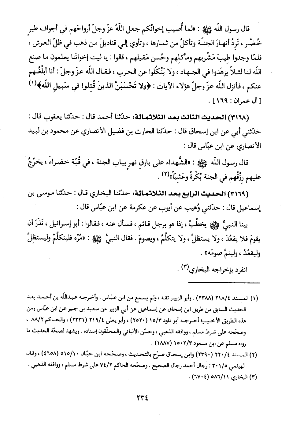 (٣١٦٨) الحديث الثالث بعد الثلاثمائة: حدّثنا أحمد قال: حدّثنا يعقوب قال: حدّثني أبي عن ابن إسحاق قال: حدّثنا الحارث بن فضيل الأنصاري عن محمود بن لبيد الأنصاري عن ابن عبّاس قال: