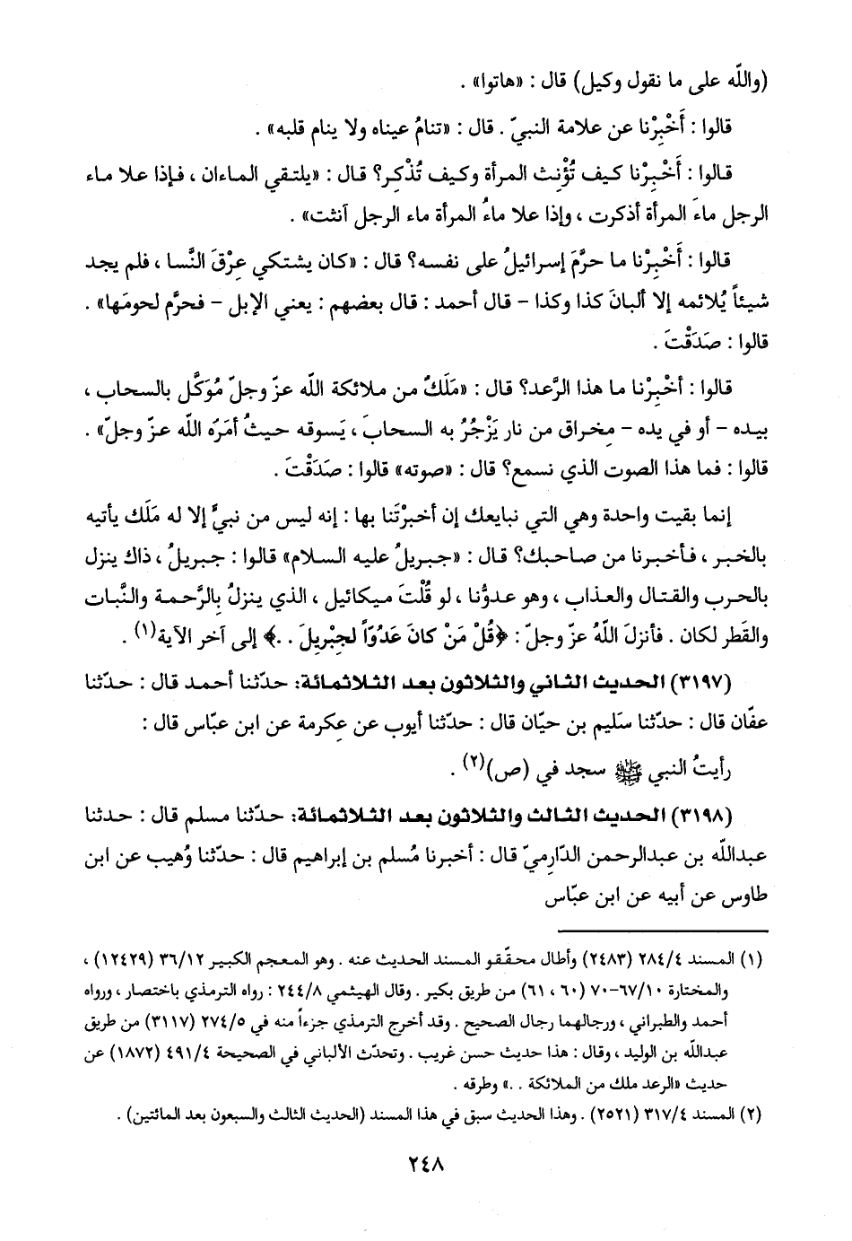 (٣١٩٨) الحديث الثالث والثلاثون بعد الثلاثمائة: حدّثنا مسلم قال: حدّثنا عبد اللَّه بن عبد الرحمن الدّارِميّ قال: أخبرنا مُسلم بن إبراهيم قال: حدّثنا وُهيب عن ابن طاوس عن أبيه عن ابن عبّاس: